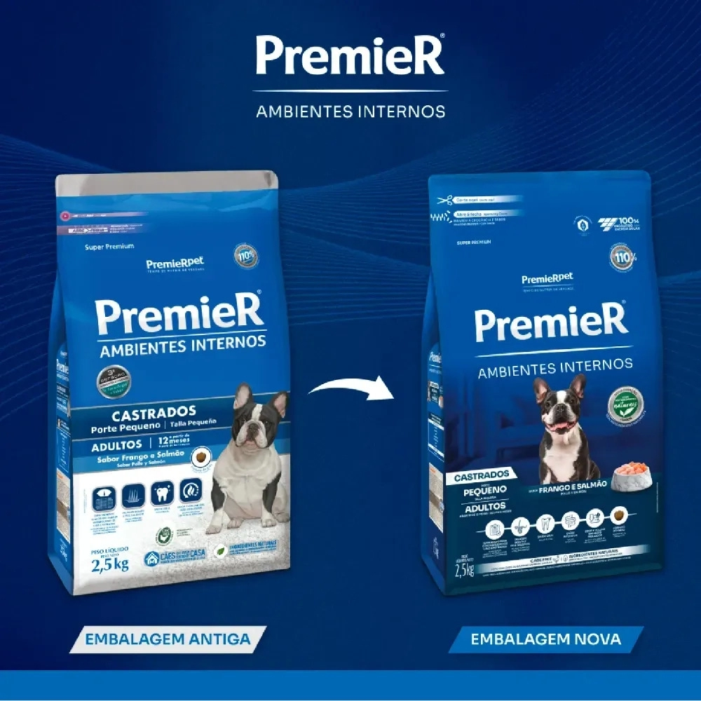 Pensando nisso, desenvolvemos PremieR Ambientes Internos Castrados – Cães Adultos, primeiro alimento do mercado específico para cães castrados, que traz em sua fórmula níveis reduzidos de gorduras e calorias, e elevados níveis de proteínas e fibras, com o objetivo de mantê-los em forma, através do controle do peso.