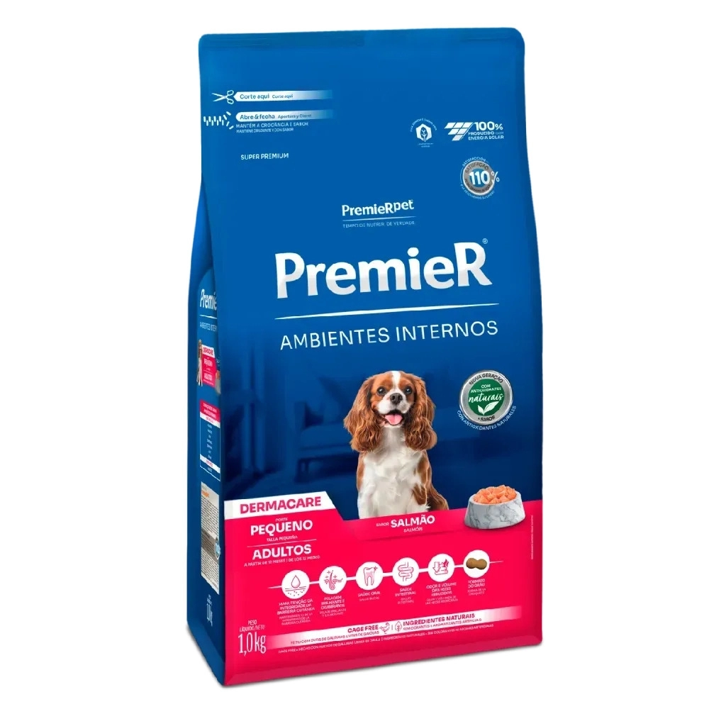PremieR Ambientes Internos Dermacare é um alimento para cães Super Premium, desenvolvido para oferecer um suporte especial para pele e a pelagem.