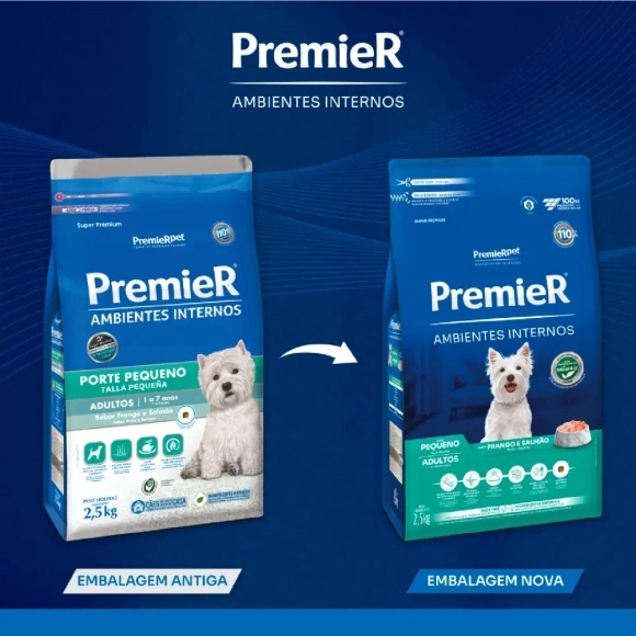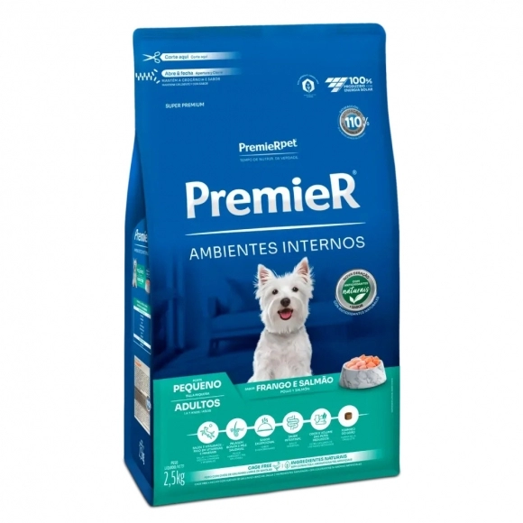 PremieR Ambientes Internos Adultos – Frango e Salmão é o primeiro alimento Super Premium específico para cães com este estilo de vida.