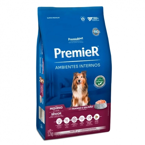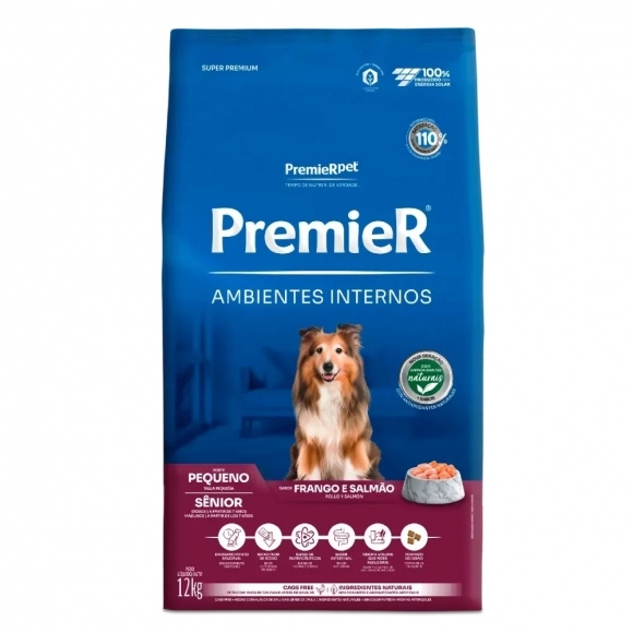 PremieR Ambientes Internos Senior é um alimento Super Premium específico para cães idosos que vivem dentro de casa.