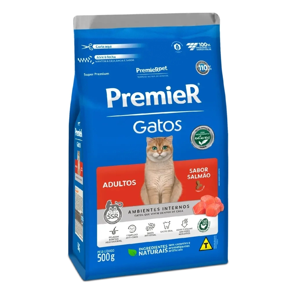 PremieR Gatos Adultos – Salmão oferece ao seu gato adulto uma refeição especial todos os dias. Além de um sabor insuperável, ele apresenta uma combinação exclusiva de ingredientes nobres que deixam a pelagem muito mais bonita e brilhante. Para a saúde do trato urinário, PremieR Gatos Adultos – Salmão acidifica naturalmente a urina, controlando a formação dos indesejáveis cálculos urinários. Conta também com uma poderosa ação antitártaro, proporcionando uma ótima saúde bucal.alimentos especialmente desenvolvida para garantir o máximo em saúde e vitalidade aos gatos através de cuidados nutricionais específicos pós castração.