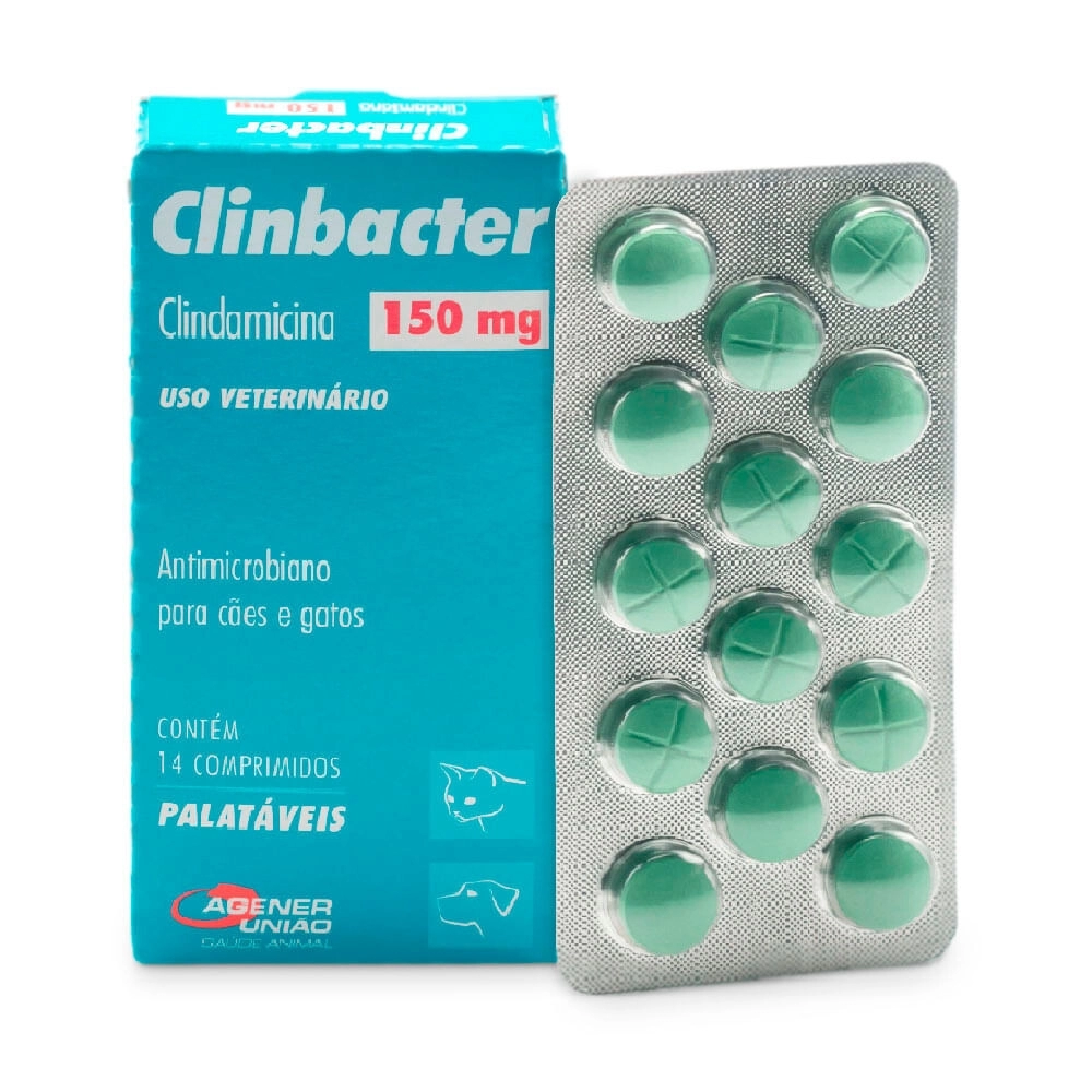 O Clinbacter é um antibiótico à base de clindamicina da fabricante Agener União indicado para o tratamento de cães e gatos. O antimicrobiano Clinbacter trata de afecções da cavidade oral, osteomielite, pele ferida, infecções profundas, trato respiratório e infecções hepatobiliares.