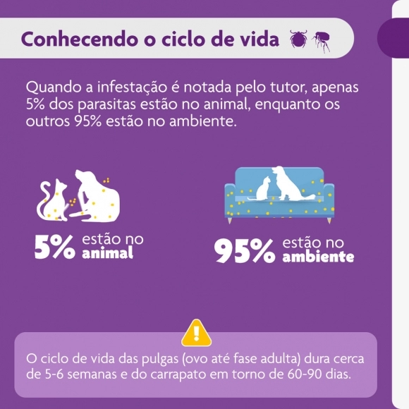 Ação Rápida: Elimina 99% das pulgas do seu pet em até 8 horas e 100% dos carrapatos em até 12 horas.