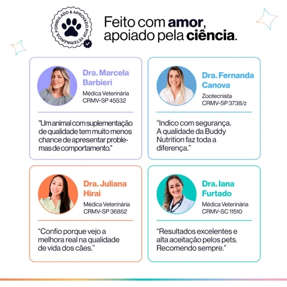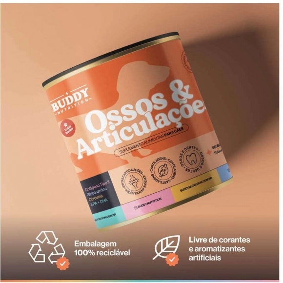 O Suplemento Alimentar Buddy Nutrition Ossos & Articulações para Cães foi especialmente formulado por especialistas em saúde canina para fortalecer ossos, dentes e articulações. Com ingredientes que promovem a formação óssea saudável e auxiliam na regeneração das cartilagens, este suplemento é essencial para manter a mobilidade e vitalidade do seu cão em todas as fases da vida. Ideal para cães de todas as idades, ajuda a garantir uma vida ativa e cheia de energia.