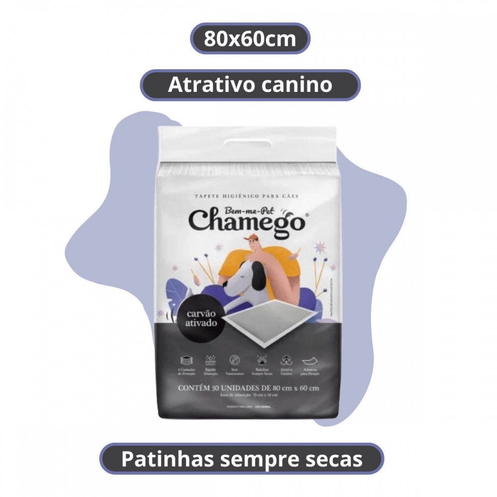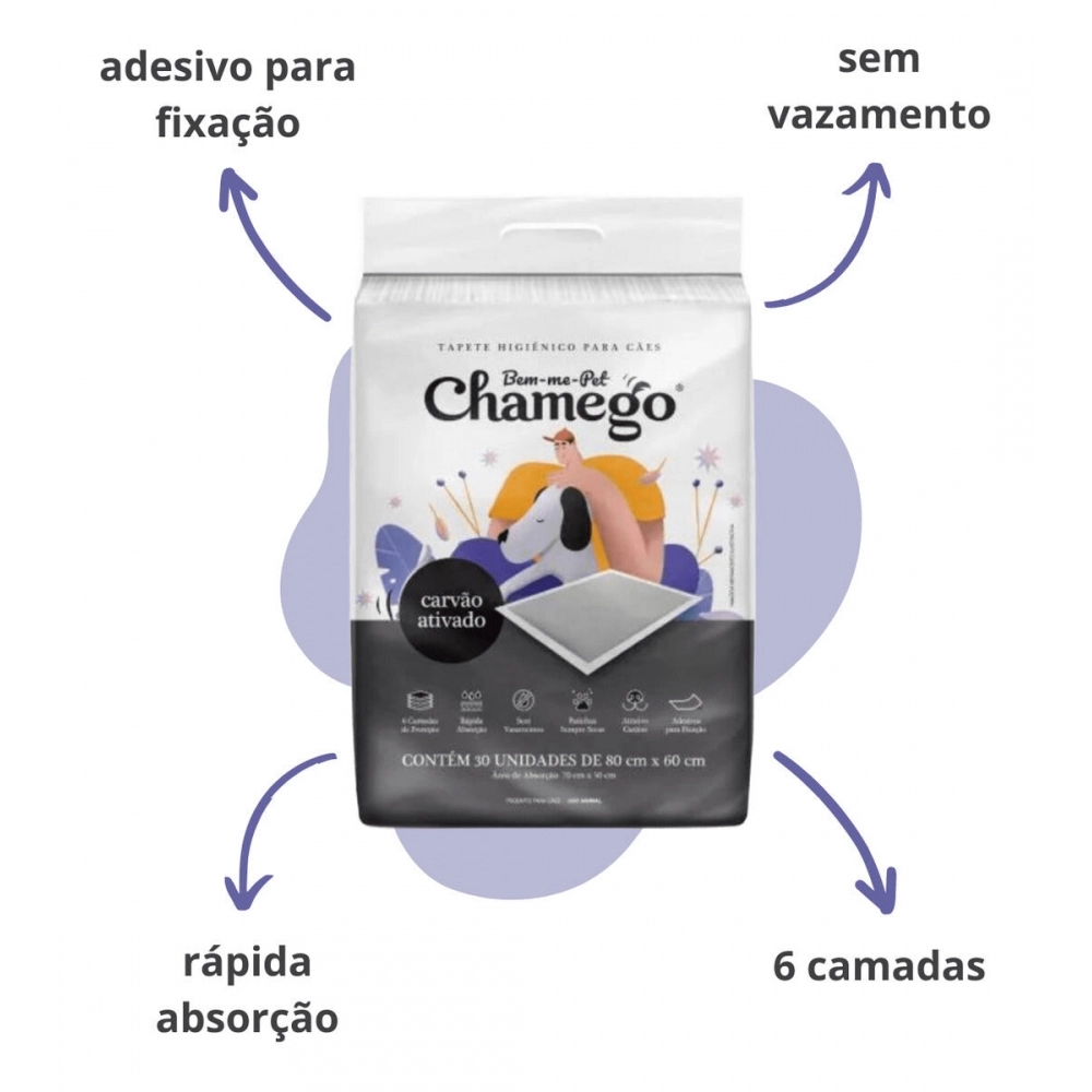 O Tapete Higiênico com Carvão Ativado Chamego é a escolha ideal para manter o espaço do seu melhor amigo limpo e livre de odores. Com dimensões generosas de 80x60cm e 30 unidades por pacote, ele proporciona uma área ampla para as necessidades do seu cão.