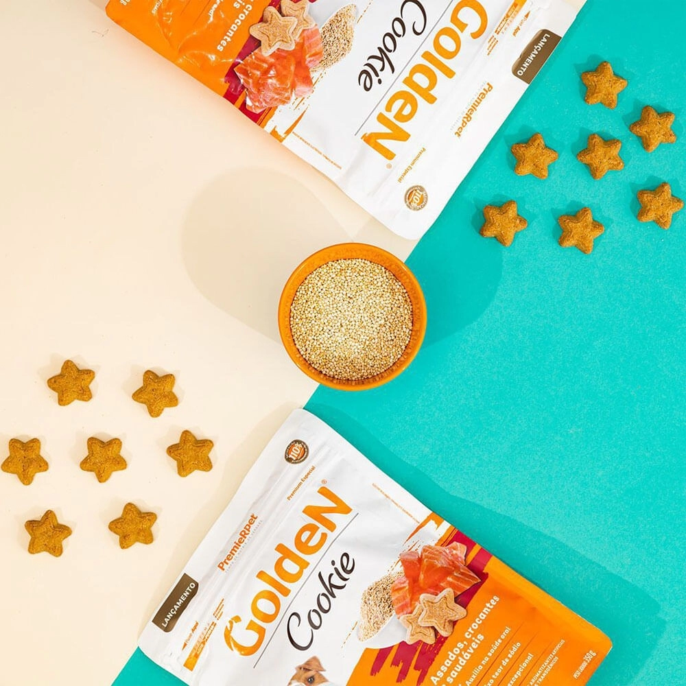 Com uma textura crocante, os GoldeN Cookies também ajudam a promover a saúde bucal, contribuindo para dentes mais limpos e gengivas saudáveis. Perfeitos para treinos ou como um agrado especial, eles são uma maneira deliciosa de reforçar o vínculo entre você e seu pet.