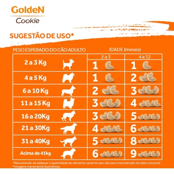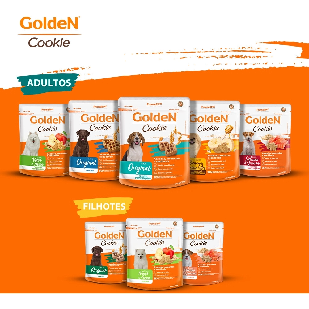 Disponíveis em embalagens práticas, os Biscoitos GoldeN Cookie são a escolha certa para quem quer oferecer um petisco saboroso e nutritivo. Mime seu cão com o melhor!