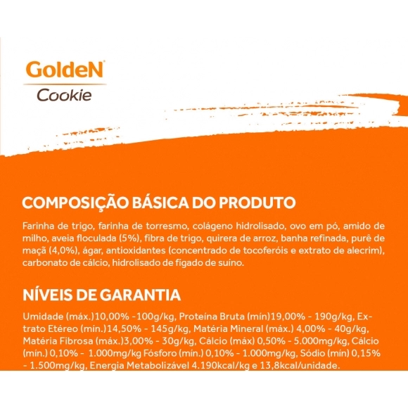 Com uma textura crocante, os GoldeN Cookies também ajudam a promover a saúde bucal, contribuindo para dentes mais limpos e gengivas saudáveis. Perfeitos para treinos ou como um agrado especial, eles são uma maneira deliciosa de reforçar o vínculo entre você e seu pet.