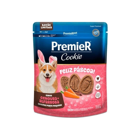 A Páscoa é uma das datas mais gostosas de se comemorar com a família e com os pets! Para aproveitar este dia e para promover a interação e conexão emocional do pet com seu tutor através de novas experiências e carinho, PremieR® Cookie Páscoa está de volta! Elaborado com ingredientes naturais, possui zinco, biotina, prebiótico, além de contribuir para a saúde oral.