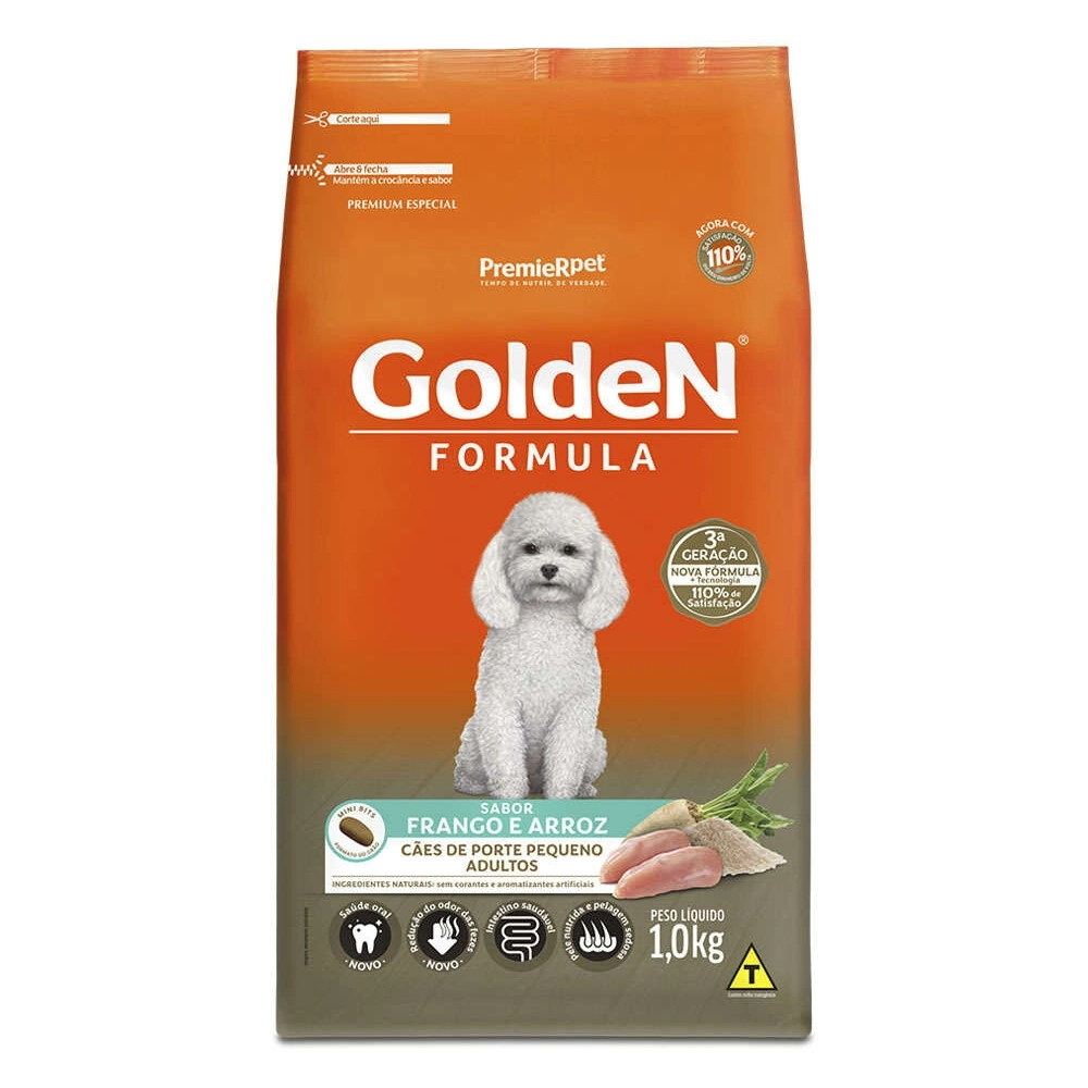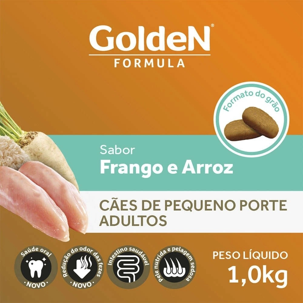 Golden Formula Adultos Frango & Arroz Mini Bits é um alimento Premium Especial desenvolvido para cães adultos de pequeno porte.