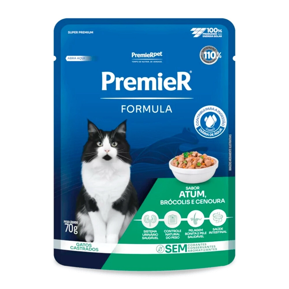 PREMIER>GATOS>FORMULA>Ração Úmida Premier Fórmula Sachê Para Gatos Adultos Castrados Atum, Brócolis e Cenoura 70 g
