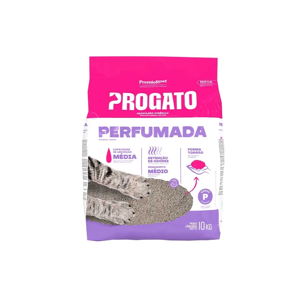 Progato Perfumada é composta por grãos pequenos, garantindo maior conforto ao gato, já que remete à textura e coloração encontrada na natureza.