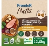 Com uma fórmula sem corantes e aromatizantes, PremieR Nattu Mandioca é recomendado para a alimentação de cães adultos e traz em sua base de ingredientes Frango, Mandioca, Beterraba, Linhaça e Cranberry, itens de alta densidade nutricional, que oferecem muitos nutrientes e poucas calorias, proporcionando uma dieta mais equilibrada para seu cão.