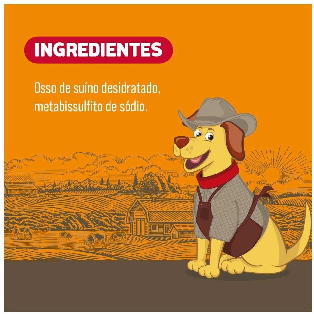 • Natural e Palatável: Feito com ossos naturais, defumado para realçar o sabor, com adição de corantes e aromas naturais (como bacon), sem conservantes químicos.