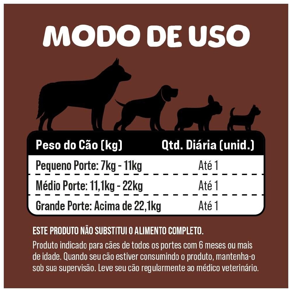 Cães de portes pequeno, médio e grande. Indicado para cães adultos e sênior.