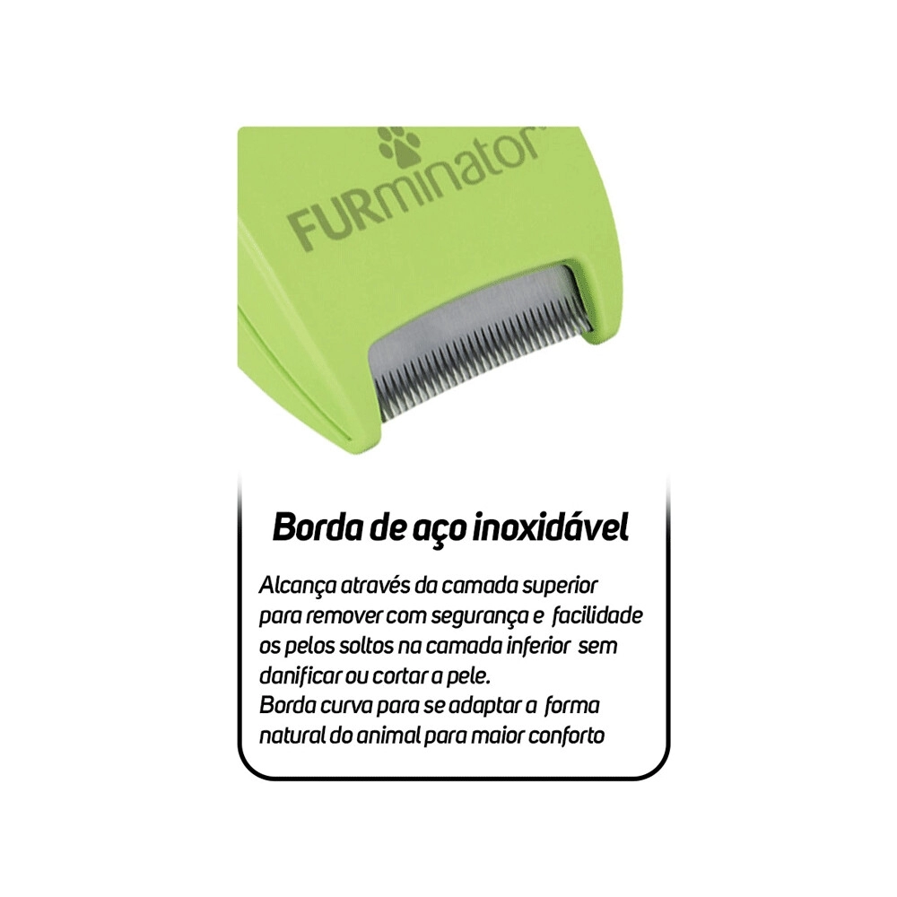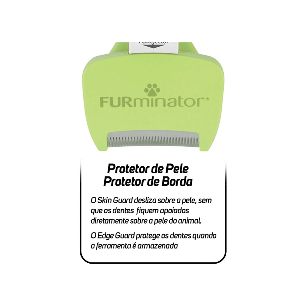 Além disso, o Furminator para Pelos Longos conta com o botão FURejector, que permite a remoção dos pelos mortos com facilidade e rapidez. O protetor de borda garante a segurança dos dentes da ferramenta durante o armazenamento, aumentando sua durabilidade. Especialmente projetado para cães de pelo longo, o Furminator para Cães reduz significativamente a queda de pelos, promovendo uma pelagem mais saudável e brilhante. É o acessório indispensável para quem busca praticidade e eficácia nos cuidados diários com seu pet.
