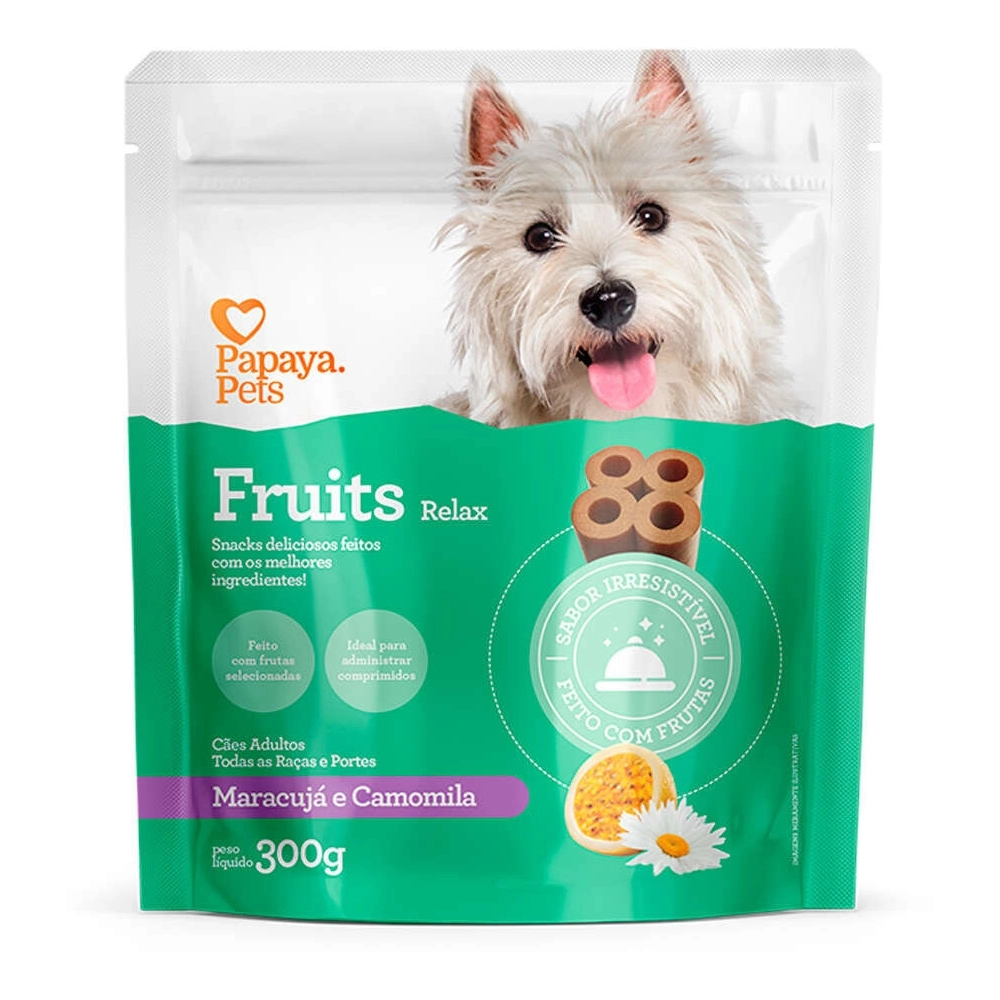 O Petisco Fruits Relax Maracujá e Camomila Cães Adultos é composto por frutas frescas e ingredientes selecionados que os pets adoram. Além disso, possui um espaço interno para colocar comprimidos, o que os torna perfeitos para ajudar na administração de medicamentos.