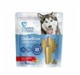 O Petisco Geladitos Frozen Banana e Melancia Cães Adultos Papaya Pets é um petisco inovador desenvolvido para refrescar e entreter os cães em dias quentes. Na embalagem vem cinco unidades com sabor tropical de banana e melancia e foi criado especialmente para agradar o paladar canino. O sorvete para cachorro pode ser congelado no freezer doméstico e servido geladinho. Não derrete, não pinga e não faz sujeira.