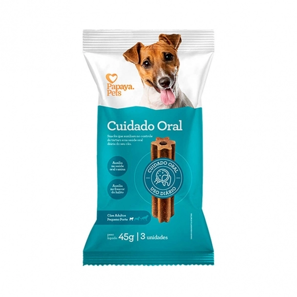 O Petisco Papaya Pets Cuidado Oral para Cães Adultos de Raças Pequenas Sabor Frango é composto com ingredientes cuidadosamente selecionados e contêm hexametafosfato de sódio, que auxilia no controle do tártaro e na higiene oral dos cães. Além disso, sua textura e formato únicos incentivam a mastigação.