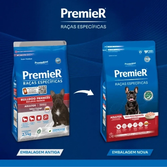 PremieR Bulldog Francês foi formulada a partir deste conceito e oferece tudo o que está raça precisa para manter sua saúde e beleza.