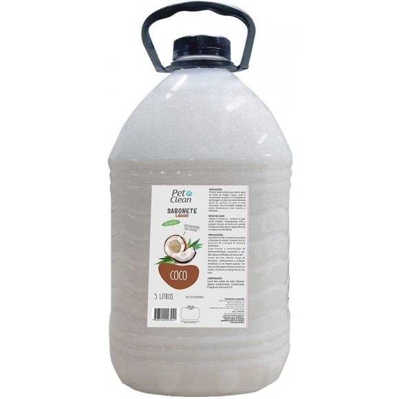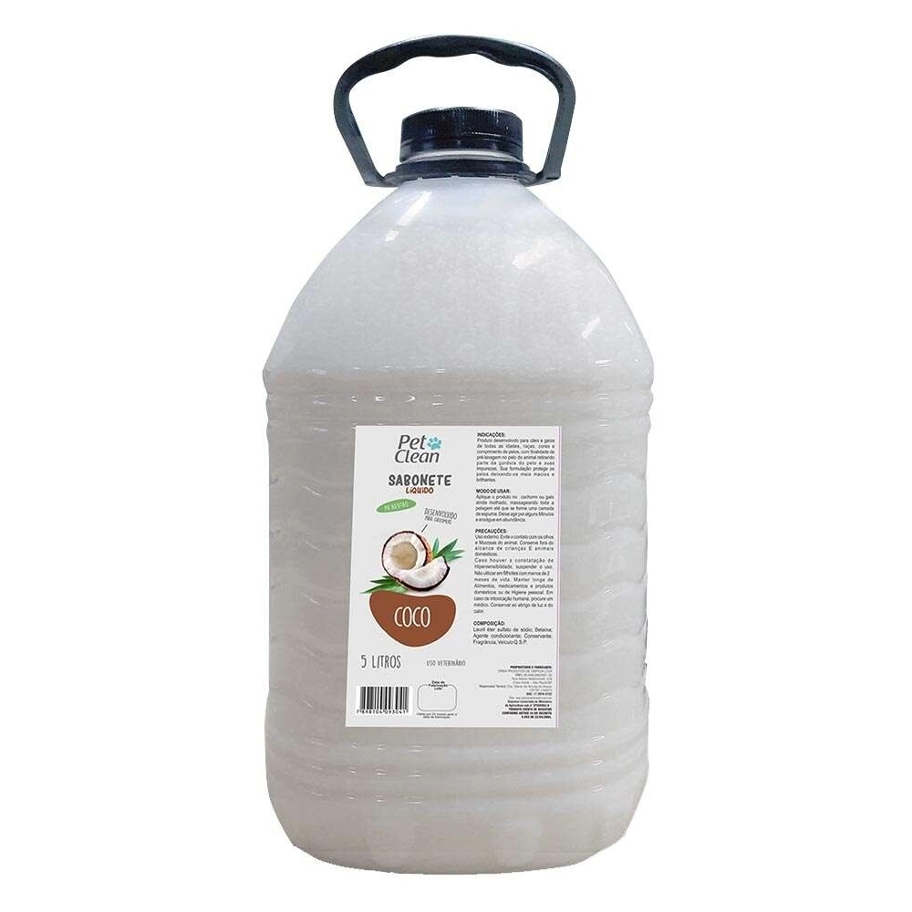PET CLEAN>HIGIENE E BANHO>SABONETES>Sabonete Líquido Pet Clean Coco para Cães e Gatos 5 L