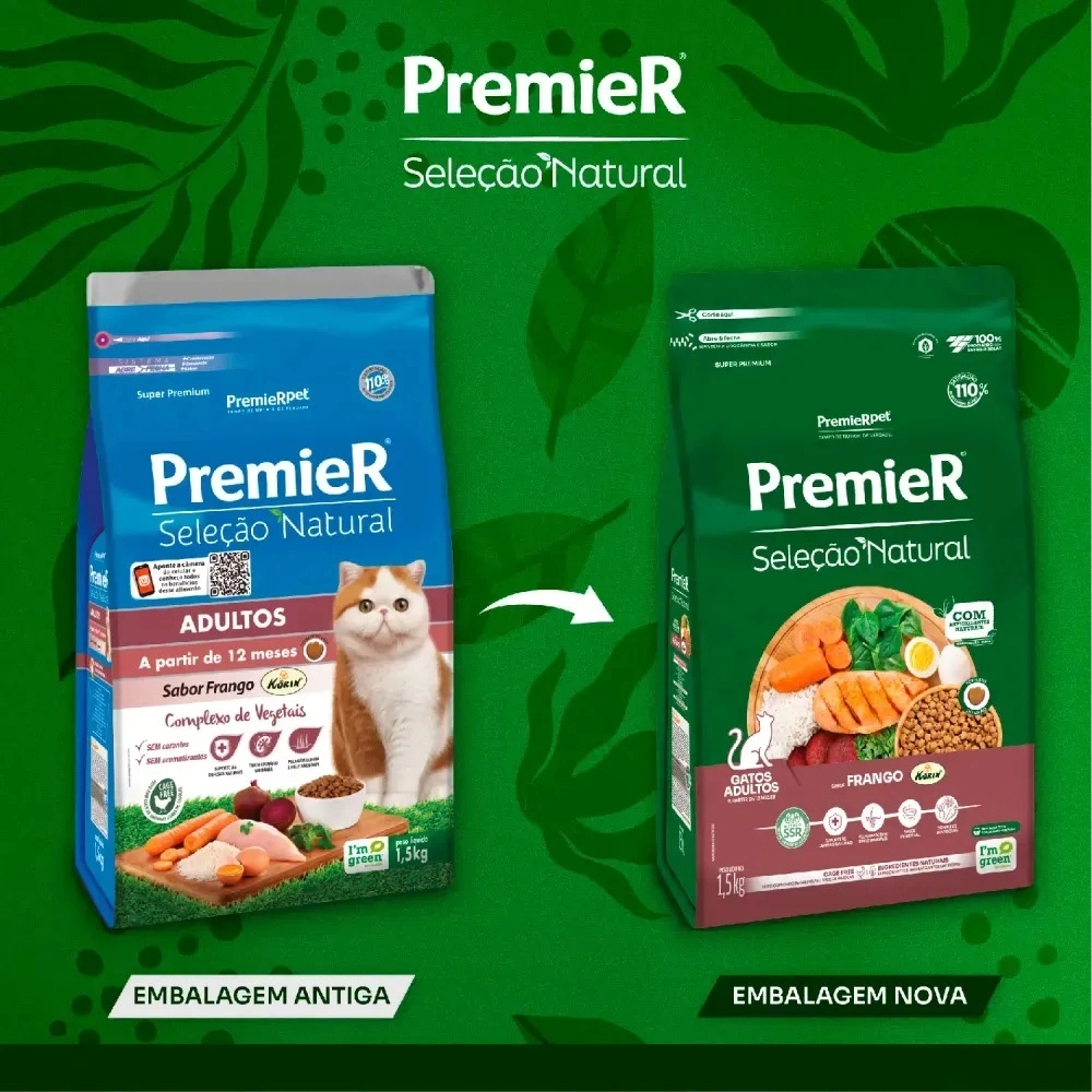 Desenvolvida a partir de pesquisas científicas e alta tecnologia, PremieR Seleção Natural é uma linha inovadora que oferece em sua composição a exclusiva fonte de proteína Korin, complexo de 8 vegetais e ingredientes criteriosamente selecionados.
