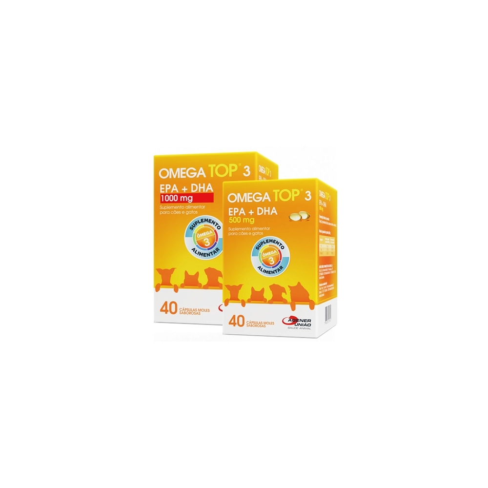 OMEGATOP ® 3 1000mg: 1 cápsula ao dia para cães e gatos de até 18 kg de peso ou a critério do médico veterinário.