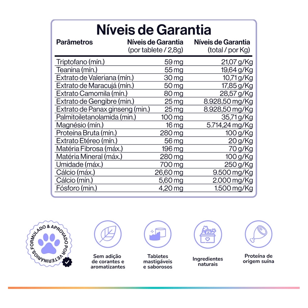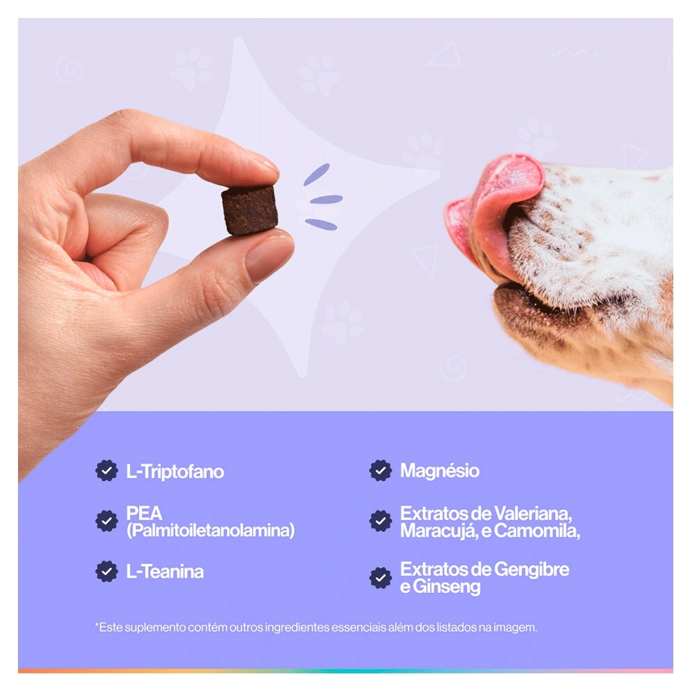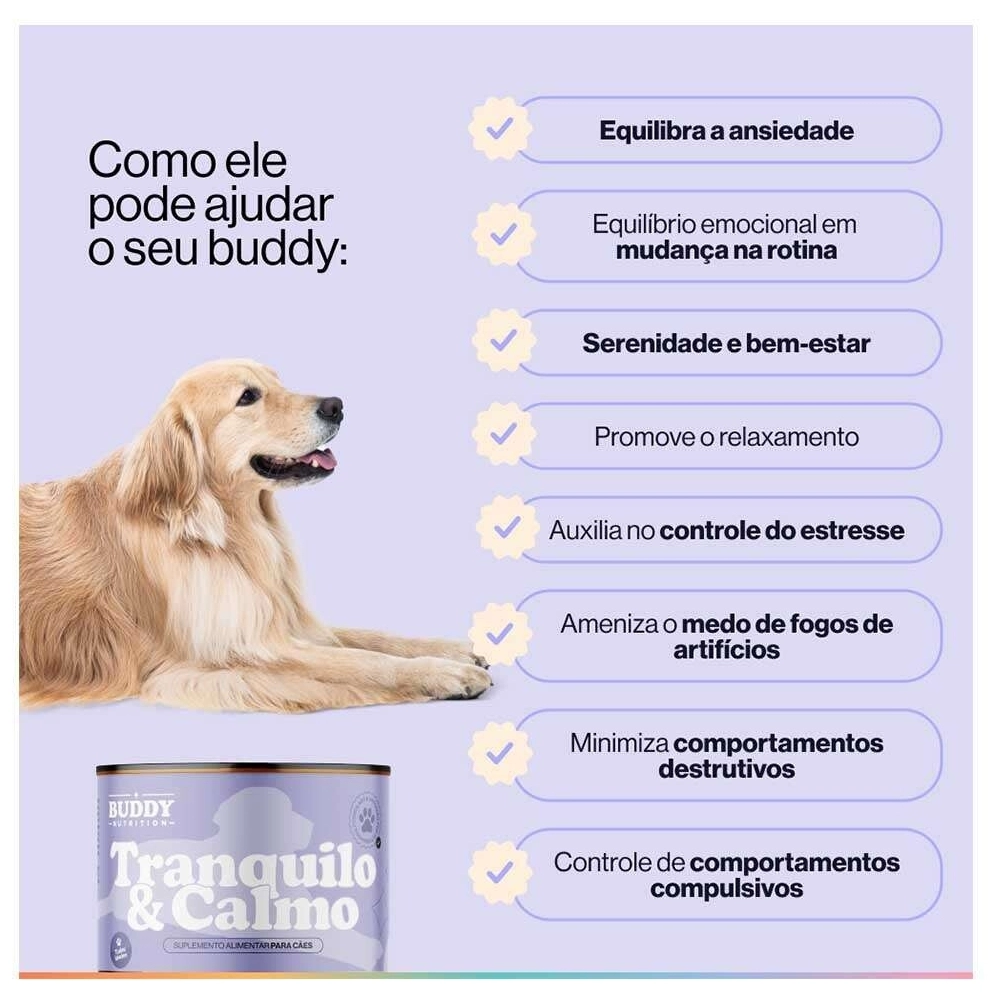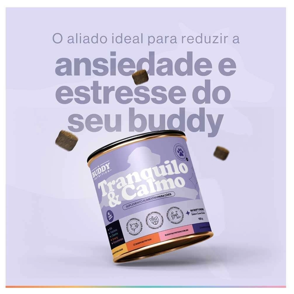 O Suplemento Alimentar Buddy Nutrition Tranquilo & Calmo para Cães é o aliado perfeito para reduzir a ansiedade e o estresse do seu pet. Desenvolvido por especialistas, combina ingredientes como Triptofano, Teanina, PEA e fitonutrientes naturais, como Camomila, Valeriana e Maracujá. Essa fórmula promove a tranquilidade, fortalecendo o bem-estar e a saúde mental do seu cãozinho. Com Buddy Nutrition, você oferece ao seu buddy uma vida mais calma e equilibrada.