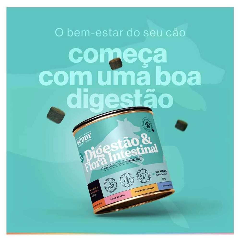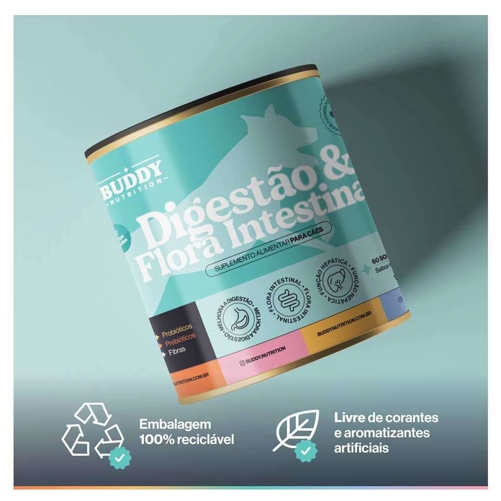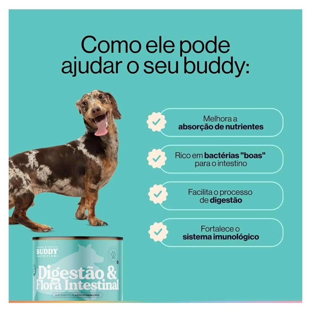 BUDDY NUTRITION>MEDICAMENTOS>SUPLEMENTOS E VITAMINAS>Suplemento Alimentar Buddy Nutrition Digestão & Flora Intestinal para Cães - 168g