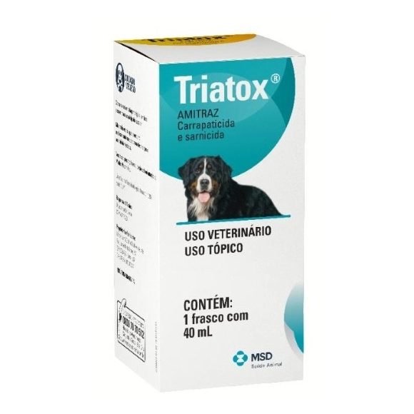 CÃES: Diluir 4 mL do produto Triatox® em 1 litro de água (1 parte de para 250 partes de água) para o tratamento de sarna demodécica e sarcóptica ou diluir 2 mL do produto Triatox® em 1 litro de água (1 parte de Triatox®para 500 partes de água) para o controle de carrapatos.