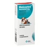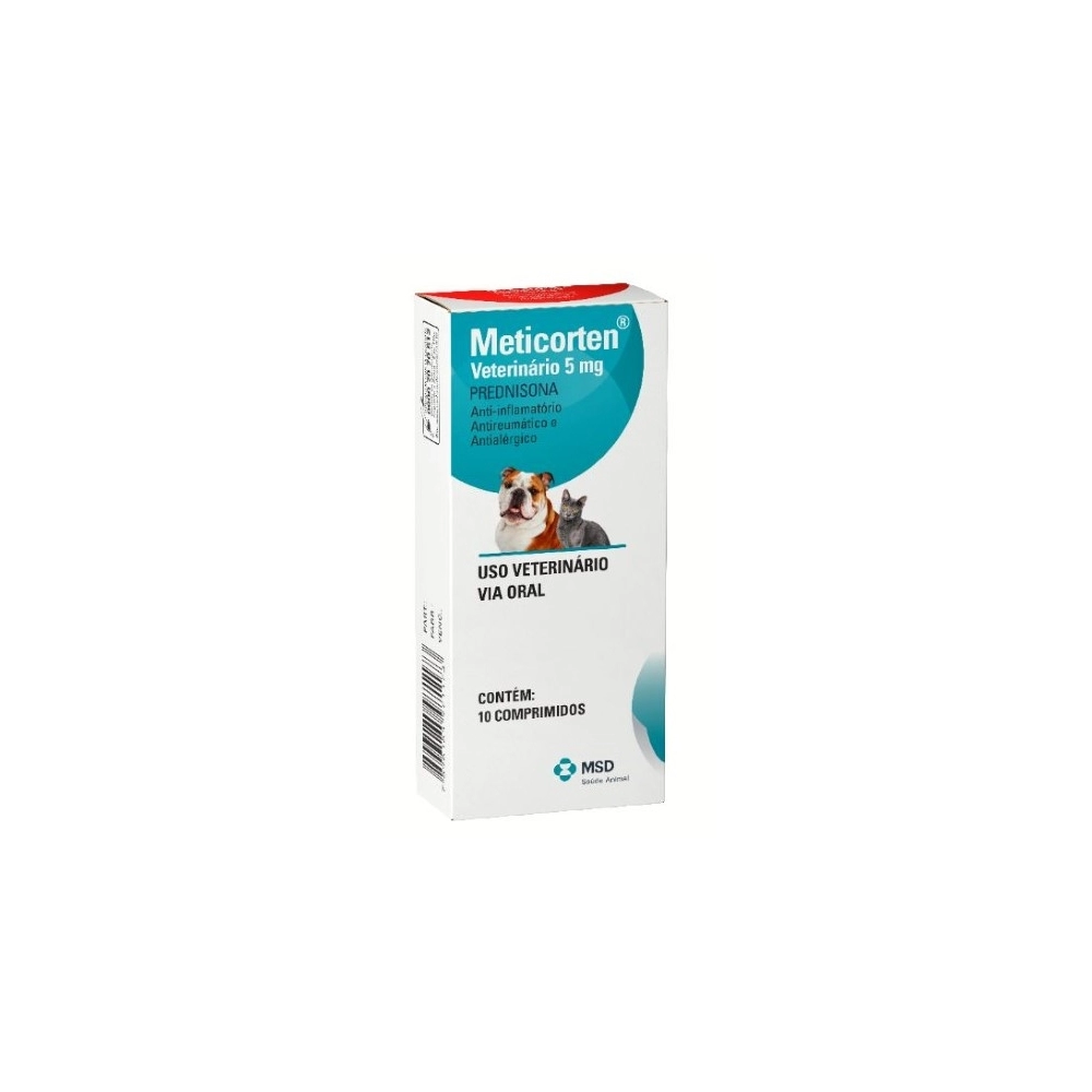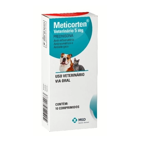 Meticorten® Veterinário 5 mg possui uma potente ação anti-inflamatória, antireumática e antialérgica no tratamento de distúrbios que respondem aos corticosteróides. O início da ação de Meticorten® Veterinário 5 mg é rápido, e seus efeitos começam a ser observados 1 hora após a administração. Contém 5 mg do glicocorticóide sintético prednisona,que quando administrado oralmente é rapidamente convertido na prednisolona biologicamente ativa. Os corticóides têm efeitos metabólicos diversos e intensos e modificam a resposta imune a diversos estímulos.