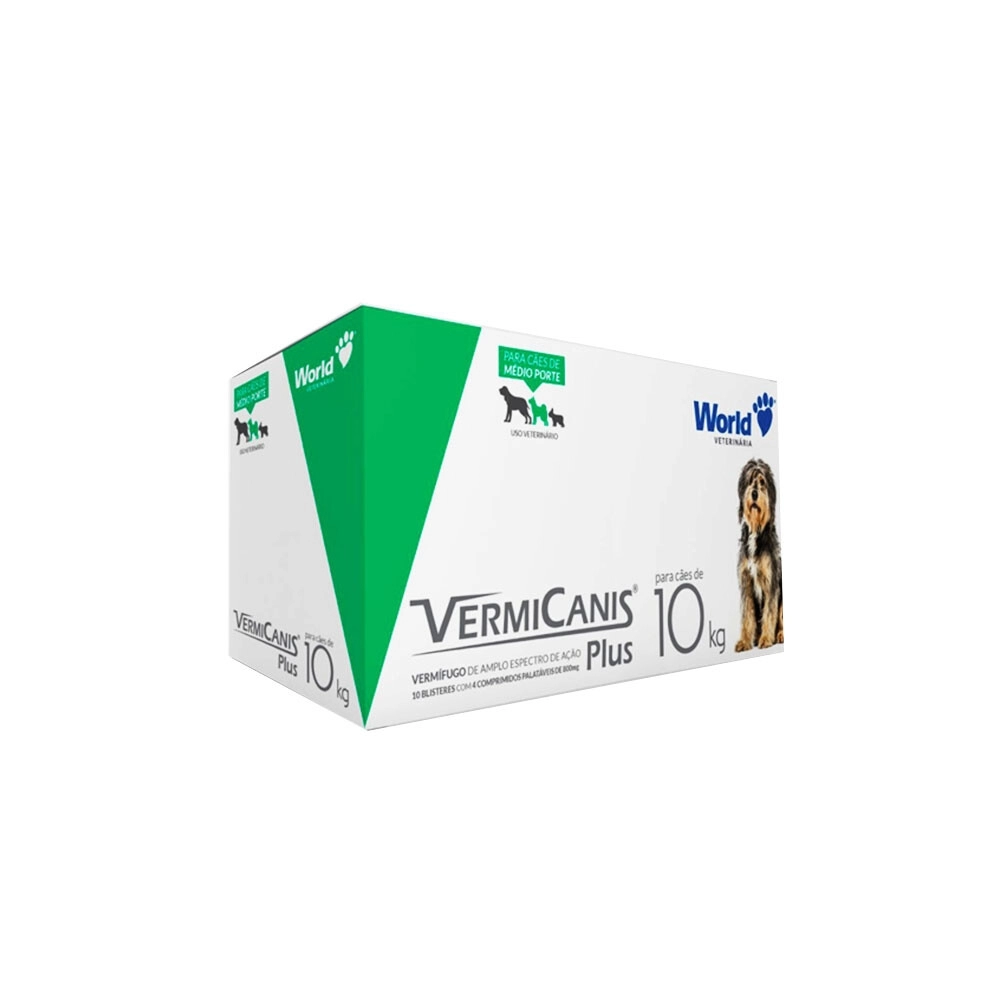 VETERINÁRIO>Vermífugo VermiCanis Plus World 800mg para Cães de 10kg - Display